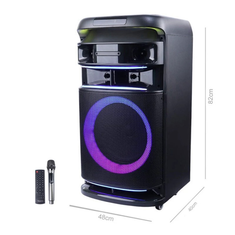 اسپیکر خانگی ایستاده Verity V-PS212 + میکروفون و ریموت کنترل اسپیکر بی سیم وریتی مدل VS-PS212 به همراه ریموت کنترل و میکروفون پشتیبانی از بلوتوث به منظور برقراری ارتباط بی سیم و قابلیت برقراری ارتباط با سیم از طریق درگاه AUX پشتیبانی از فناوری TWS به منظور متصل شدن همزمان دو یا چند اسپیکر از این مدل به یک منبع بلوتوثی واحد دارای یک ساب ووفر 12 اینچی و یک توییتر 3 اینچی، دارای امپدانس برابر با 4 اهم و میزان حساسیت 92 دسی بل مجهز به استند موبایل، دارای نورپردازی RGB به منظور ایجاد جلوه بصری زیبا، دارای درگاه USB جهت شارژ اضطراری پشتیبانی از رم میکرو اس دی و فلش مموری جهت پخش فایل های ذخیره شده، دارای یک عدد ورودی گیتار و یک عدد ورودی میکروفون مجهز به کلیدهای فیزیکی و چرخشی متنوع جهت مدیریت ولوم، Mode، پخش و قطع موسیقی و ...، دارای دسته و چرخ به منظور حمل آسان تامین انرژی با اتصال کابل همراه به درگاه دو پین تعبیه شده بر روی بدنه، پشتیبانی از قابلیت کارائوکه جهت هم خوانی با موسیقی در حال پخش توان اسمی (P.M.P.O) برابر با 380 وات، توان واقعی (RMS) معادل با 40 وات، پشتیبانی از رادیو FM برای دوستداران برنامه های رادیویی بدنه مقاوم ساخته شده از پلاستیک و فلز، دارای نمایشگر LED جهت اطلاع از وضعیت کارکرد، اقلام همراه شامل کابل برق، ریموت کنترل و میکروفون مشخصات محصول محدوده توان 21 تا 50 وات رابط جک 3٫5 میلی متری صدا USB بلوتوث قابلیت کارائوکه دارد نمایشگر دارد تامین انرژی از طریق باتری داخلی توئیتر دارد تعداد اجزا اسپیکر 1 تکه پشتیبانی از رادیو FM دارد نوع اتصال با سیم و بی سیم پشتیبانی از کارت حافظه Micro SD تعداد درگاه USB 2 عدد تعداد و سایز ساب ووفر 1 عدد 12 اینچی نورپردازی RGB پشتیبانی از TWS دارد ابعاد 40×48×82.5 سانتی متر ورودی میکروفن دارد امپدانس 4 اهم اقلام همراه کابل برق/ میکروفون/ ریموت کنترل توان واقعی (RMS) 40 وات ریموت کنترل دارد وزن 19.5 کیلوگرم حساسیت سیگنال به نویز 92 دسی بل نوع محصول اسپیکر رومیزی (چند تکه) کلید فیزیکی به منظور مدیریت موسیقی، میزان صدا، Mood و ... توان خروجی اسمی 380 وات چرخ دارد